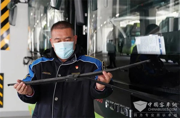1月17日,在北京2022年冬奥会和冬残奥会延庆停保中心场站,驾驶员查看车辆状况。