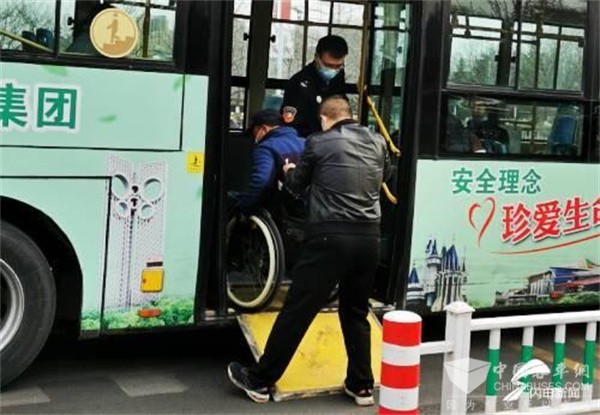 当车辆行驶至人民广场站点时,老人准备下车,陈浩再次来到老人身边,放下后门处的斜面踏板,并在其它乘客的帮扶下将老人送下车。驾驶员贴心的举动也温暖了身边的人。
