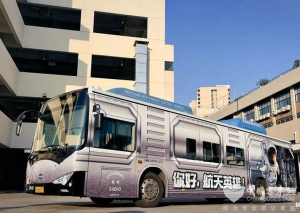 2021年9月17日,神舟十二号载人飞船返回舱反推发动机成功点火后,安全降落在东风着陆场预定区域。杭州公交以12路公交车为载体,打造航天主题巴士,呼应神舟十二号载人飞船,为中国航天献上了一份贺礼,共同致敬那些谱写中国载人航天新篇章的航天英雄们。