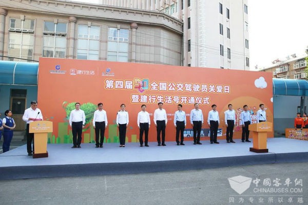 活动现场,中国建设银行山东省分行党委书记、行长杨军与济南公交集团董事长、党委书记石军共同为建行生活号揭牌,共同开启济南公交第四届“520全国公交驾驶员关爱日”主题活动。