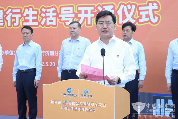济南公交集团总经理、党委副书记周建国,中国建设银行山东省分行党委委员、副行长兼济南分行党委书记、行长刘春龙分别为活动致辞。