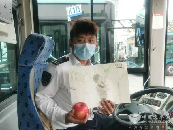 为感谢前期驾驶员免费提供的口罩和帮助,一名小学生为济南公交K1路线驾驶员高睿送来了自己画的一幅画和一个大苹果,画的右上角还写了“关爱司机 节日快乐”四个字,祝福公交驾驶员平安快乐,很多乘客也通过其他方式表达了对公交驾驶员的理解、支持和关爱。