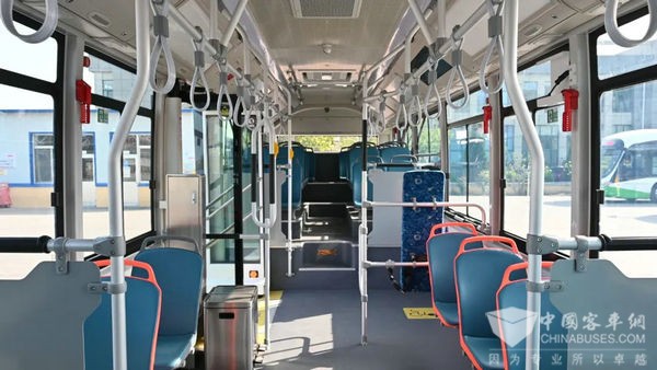 车厢配备超低温热泵冷暖空调、铝合金扶手杆、高档皮质软面乘客座椅,全车侧窗安装纳米隔热玻璃,采用纳米科技技术,夏天隔断炎热的日照、紫外线,起到隔热的效果,冬天抑制室内暖气的流出,提高保温效果,大大提升了乘坐的舒适性,更加便民贴心。