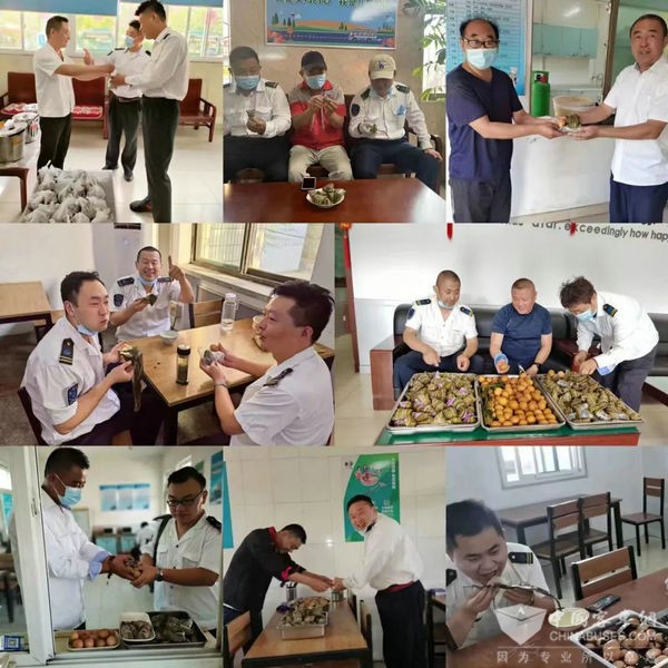 北部公司车队工作人员提前在超市里购买了糯米、蜜枣、粽叶、绳子等材料,端午节一大早,车队工作人员就开始准备包粽子,休班驾驶员曾范智、刘学弟也前来帮忙。