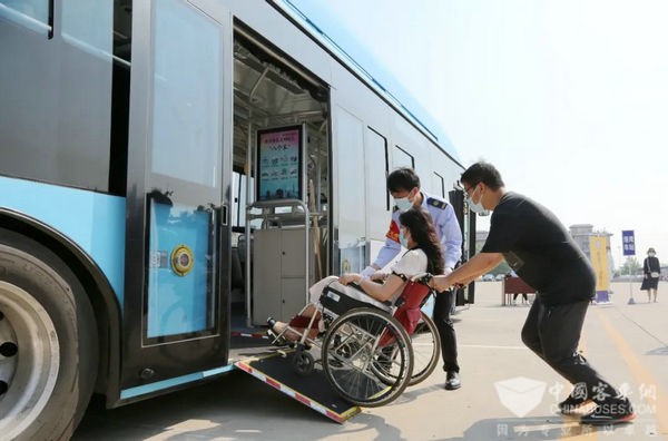 自2018年起,南京公交集团购置了无障碍设施的公交车600余辆,重点在大型住宅小区、各大医院等沿线运行。通过后门可折叠踏板方便轮椅、婴儿车、小推车等上下车,车厢内还设置轮椅专用区,为残障人士提供安全、舒适、便捷、温馨的出行环境。