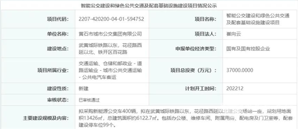 总投资3.7亿!,黄石将采购400辆新能源公交车,新建一座公交场站,预计2022年12月开工!