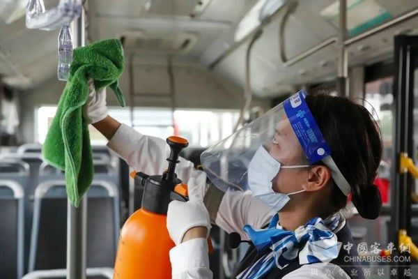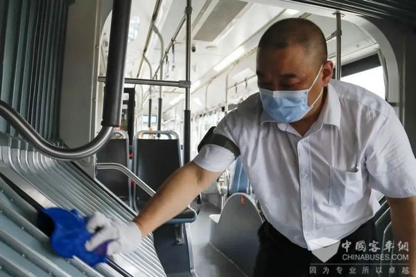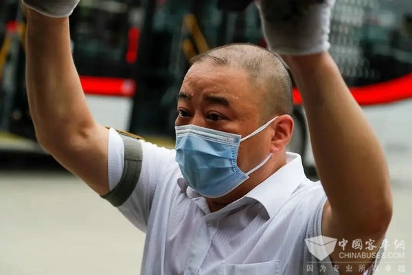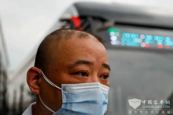 检查完毕,一上车,由于刚刚打开空调,记者明显感受到车内温度高于室外温度,连座位都能烫屁股。“上车以后,我们乘务员会对车厢内包括扶手、地面、栏杆等进行清洁消杀,我会帮忙擦干,这样配合起来会完成得快一点,确保车辆准点发车。现在因为要执行防疫要求,车辆窗户不能紧闭,特别是驾驶位边上的窗户更是必须保持开启状态。”张津晟告诉记者,为了驾驶安全,在驾驶位一侧的窗帘他是从不拉下来的,由于驾驶座经常受到阳光的直射,这使得他手臂的肤色更加黝黑。