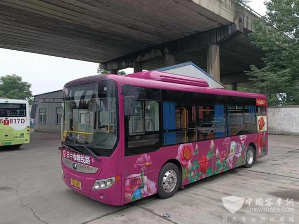 近期,为了加大宣传"天中巾帼线路",打造全国特色精品公交线路,让"天中巾帼线路"成为一张城市流动名片。驻马店市公交公司将12路整条线路车体外观重新设计,结合女性工作特点,将车身整体颜色定为偏女性化的洋红色,车身四周以四季盛开的月季花为元素进行设计,盛开的月季花朵围绕着车身,让乘客有置身于花海中的感觉。