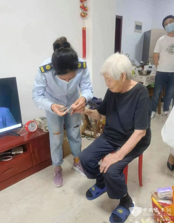 同行中女同事有的帮助张奶奶理发,有的帮助张奶剪指甲。 临别前,张奶奶依依不舍地说:“太感谢你们了,你们都是好人啊!”