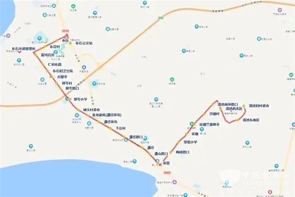 该线路起讫站点为清透旧村委会和东石公交站,停靠清透旧村委会—清透东南区—清透西北区—清透南环路口—洪塘村—张塘竺雲禅寺—张塘—型厝小学—梅峰路口—张厝—潘山路口—潘径—潘径路口—下庄村—潘径环岛—金龙豪苑(潘径环岛)—埔头村委会—郭岑小学—郭岑路口—郭岑村—古檗亭—东石旧卫生院—仁和东路—富鸿百货—东石市场管理所—东埕村—永坑—东石公交站等28个站点。