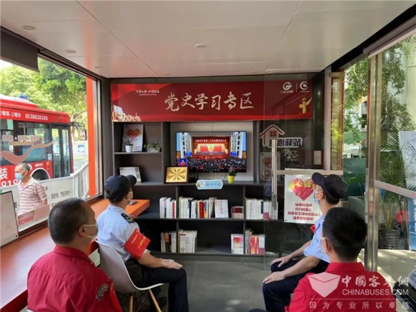 公交站场员工在“党建驿站”集中观看党的二十大开幕会