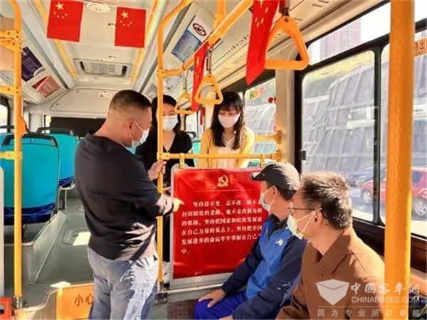 近日,青岛城运控股公交隧道巴士公司325路公交车驾驶员周群松和全国劳模王艳一起,打造了“二十大主题宣传车”,让公交车成为宣传党的二十大精神的流动平台。主题车车厢内部以红色背景为主色调,在车厢内的上下客门、顶棚、座椅、宣传橱窗等位置设置了40余幅二十大主题宣传海报。车上还配置了“便民服务箱”,备有应急药品、口罩、消毒湿巾等,以实际行动向党的二十大献礼。