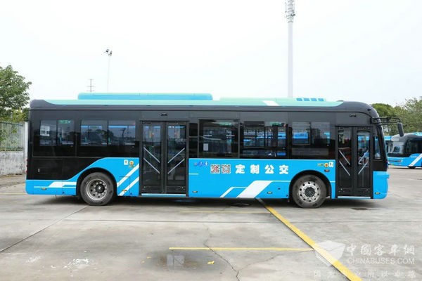 新车车身为蓝色,外形采用流线型设计,一改之前车辆方形基调,造型新颖、简洁、流畅,整车看起来透亮宽敞。