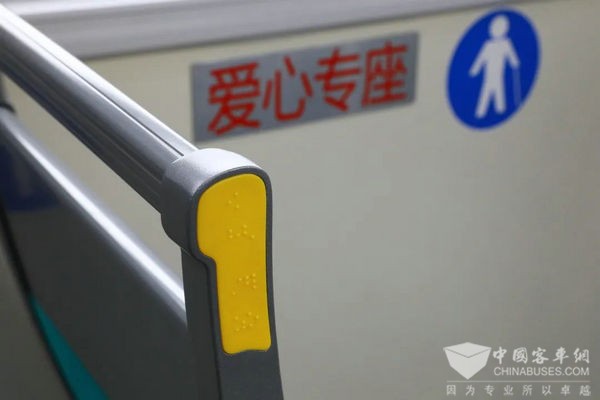 增添了爱心专座区域的,盲文触摸提示,进一步方便盲人快速找到乘车座位。