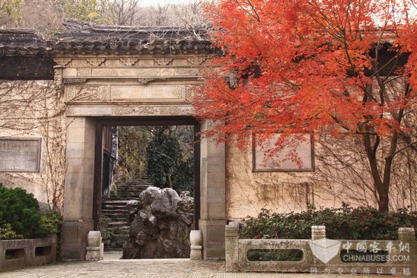 “溪锦堂”旁边(粉墙黛瓦+红枫流丹)