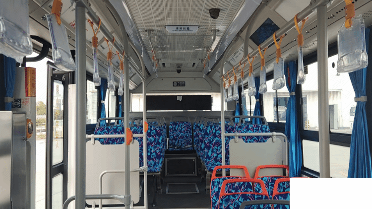 车内,为了更好地提升当地乘客的乘车体验感,采用一级踏步,距地高度36cm以下,方便老人、小孩上下车;配置软包座椅,进一步提升乘坐舒适度。