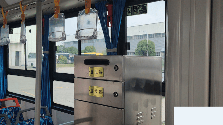 车内还配备贴心装置——增设意见箱和急救箱,具备USB充电口,下车门采用外摆气动高铁门,更加快捷安全。