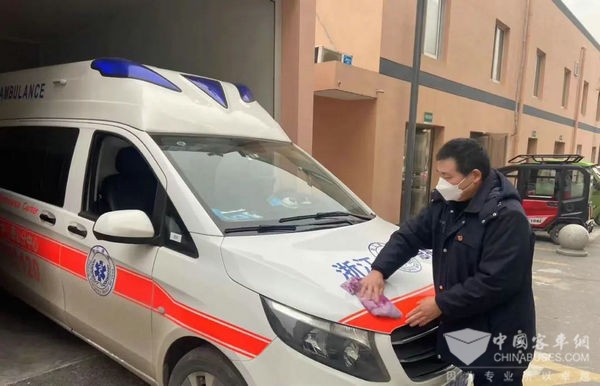 1月1日早晨7点,汽二分公司公交司机卢新年早早地就来到杭州120急救中心,穿好防护服、戴N95口罩、给急救车辆消毒,有条不紊地为今天的120急救车驾驶工作做着准备。