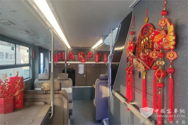 “泉橙巴士”运行线路沿途覆盖济南市诸多著名景点,大明湖、趵突泉、泉城广场等景点均“揽入怀中”。双层观光车线路的开通,让旅游观光具有了“高视野”,游客途步游览后,在线路站点乘车,便又可从“梦幻视角”观赏泉城景色。双层观光巴士车厢内部也进行了特别的装饰布置,让车厢内年味十足。