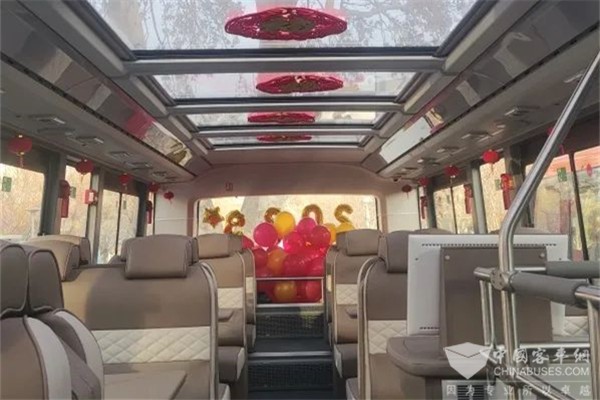 双层观光巴士车辆内现代化服务设备齐全,提供冰箱、饮水机、点唱系统、语音导览等乘车服务,为乘客提供更佳乘坐体验。同时,车辆还可以接受定制化装饰与包车服务,从装饰布置到线路设计,最大程度满足乘客定制需求,让市民乘客体验亲子旅游、研学线路、商务接洽等专场定制服务,实现心想事“橙”。