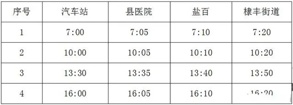 无棣汽车站-县医院-盐百-棣丰街道办事处-河沟村-银王庙村-小齐村-李家楼村-贾家店村-韩家村-贾家楼-郭家-袁家村-河北村-河西营村-王白杨村-李白杨村-杨白杨村-袁白杨村-梁白杨村-棣丰街道办事处-盐百-县医院-无棣汽车站(环型线路)