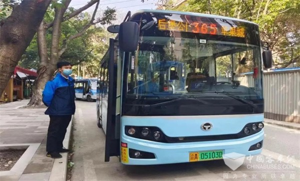 据365路线路值班长许宁介绍,本次他们对全线15台车进行了更新。更换后的新车为恒通纯电穿梭巴士,车身5.99米,车内座椅11个。相比此前车型,此次投放的为纯电车,车内外噪音更小,车厢更加宽敞,动能更加强劲,也更加的节能环保。