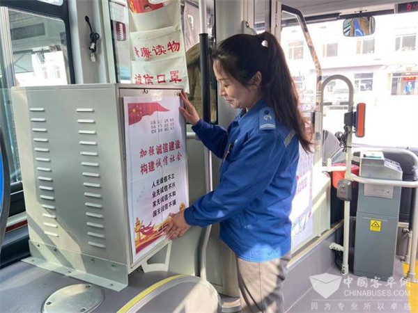 走进车厢,812路“诚信主题公交车”以“加强诚信建设 构建诚信社会”为宣传口号,路长李灵还亲手绘画了海报,希望利用市民碎片化时间,植入诚信文化,让诚信理念走进市民生活。“诚信主题公交车”还在车厢内专门设有诚信口罩袋,市民在忘记戴口罩的情况下可以自助取用,等再次乘车时,将独立包装的新口罩放入‘诚信口罩’箱内循环使用即可。