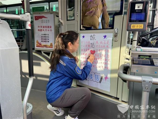为营造浓郁诚信氛围,由太原公交第三汽车分公司四车队设计打造的一批“诚信主题公交车”正式上线运营。充分发挥公交“亲和力强、流动性强、宣传面广”的优势,以公交车为载体打造的移动宣传阵地,将诚信宣传和市民紧密结合起来,让“诚信主题公交”成为城市里一道亮丽的风景线。