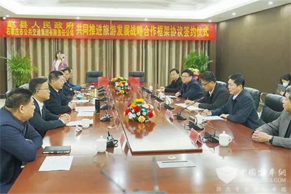 2023年3月22日,石家庄公交集团与赵县人民政府签署共同推进旅游发展战略合作框架协议。双方将携手推进“公交+文旅”模式在赵县落地实践,构建便捷高效、服务优质、安全有序的公交旅游服务体系,打造连接市民与赵县美景间的桥梁,为赵县文旅产业高质量发展注入更多动能。
