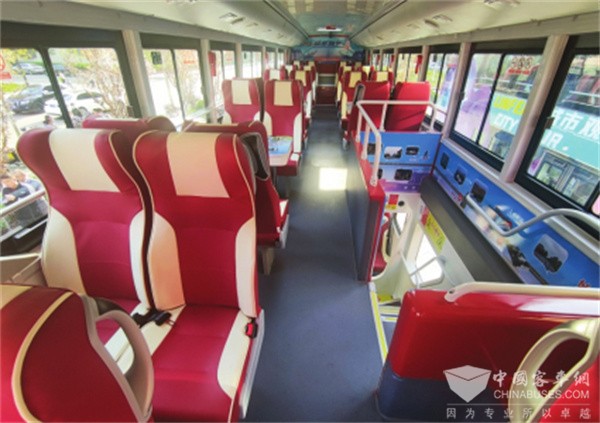临汾公交公司相关负责人介绍,这种双层观光巴士采用纯电动设计,绿色环保,空间大,最多可载客101人,一层采用豪华旅游商务真皮座椅,二层采用双人卡式真皮座椅,并设有休闲桌;车内饰紧贴城市地标特色,二层配备超大视野观景台,乘客既可以欣赏沿途风光,又能有温馨的体验感。同时,车辆安全设施采用360环视倒车系统、智能驾驶员行为检测仪、车道辅助防撞系统等,让旅客出行更安全。