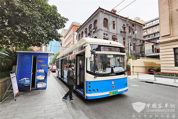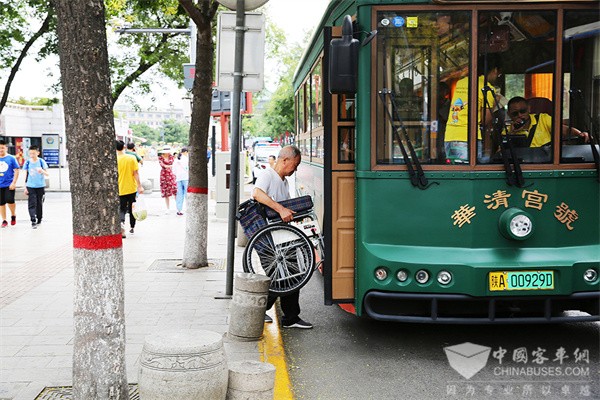 2019年8月17日早上,一辆复古旅游观光巴士“铛铛车”停在中山门里的永兴坊旁,等候游客市民上车体验。