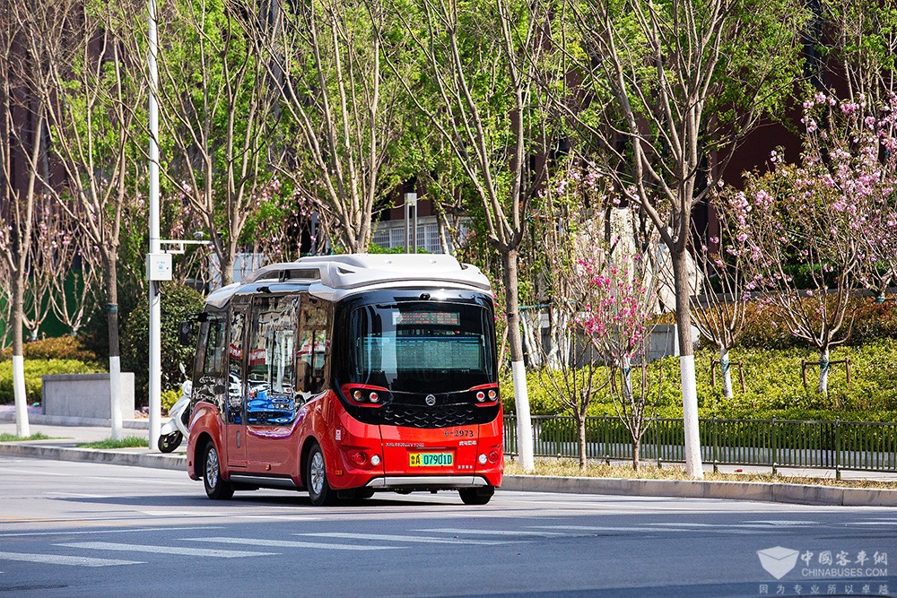2021年7月5日,河南郑州,L4级自动驾驶微公交——宇通自动驾驶巴士“小宇2.0”陆续在郑东新区试运营,供市民预约体验。