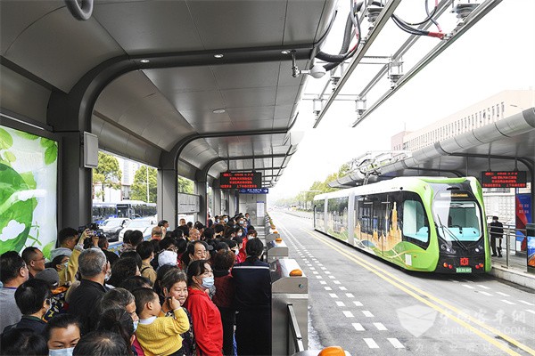 2021年3月30日,湖南株洲,株洲智能轨道交通系统进入试运营阶段。外观酷似有轨电车,却没有钢轨,靠着虚拟轨道穿梭在城区。当日早上6时许,随着“株洲号”智轨电车从湖南工大站载客驶出,意味着株洲公交快速廊道、株洲智能轨道交通系统进入试运营阶段。试运营期间,在廊道内乘坐智轨电车、公交车一律免费(试运营期间直接免费进站,无须刷卡购票)。据悉,智轨不依赖钢轨行驶,一般3节编组,载客300余人,是由中车株洲所研发的全新交通工具。株洲智轨自2017年建成神农大道试验线以来,其商运进程广受关注。2019年12月,四川宜宾建成首条商运线并投入运营。2020年8月,株洲启动14公里连接东西城区的智轨商运线建设。经过半年多紧张施工,建成试运营。