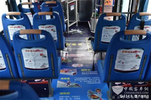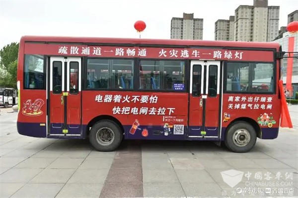 “消防公交专线”以“全民消防、你我同行”为主题设计,紧密结合消防元素,车身两侧张贴居家、外出消防提示标语及消防动漫插画,车厢内布满各类消防宣传喷绘,每个座椅背面张贴“消防知识灭火十招”,地面印有“家庭防火三清三关”、灭火器使用方法等消防知识,同时放置便民服务袋,车上还备有形式多样的消防宣传手册,车厢内循环播放消防宣传广播,采用图文并茂的方式为市民提示消防安全注意事项,使更多市民“学消防、知消防、会消防”。