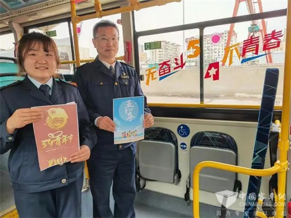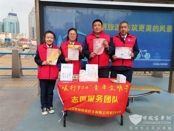 在2023年“五四”青年节到来之际,青岛城运控股公交集团隧道巴士第五分公司在304路线QD001号车上,打造“五四青年文明号”主题宣传车,通过十米流动车厢弘扬五四精神。青年志愿者还走上街头,开展“导游式服务”,用实际行动向青春致敬,向节日献礼!
