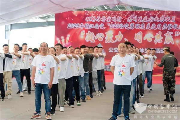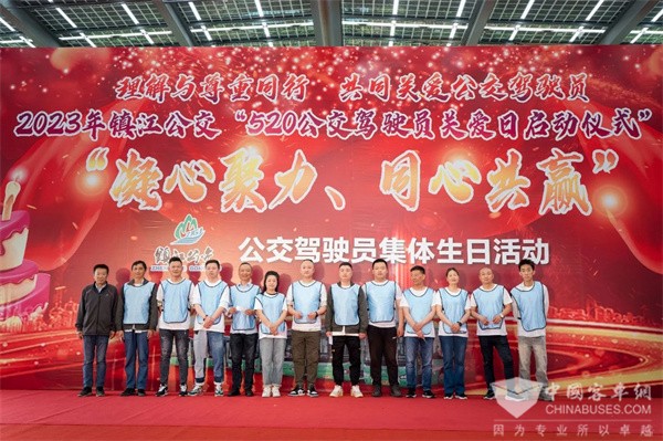 2023年5月17日,镇江公交“5.20公交驾驶员关爱日”启动仪式暨“凝心聚力、同心共赢”公交驾驶员集体生日活动在镇江科技新城东园公交枢纽站举行。市交通运输局、市总工会、市财政局、市交通产业集团等机关、企事业单位领导、乘客代表、公交职工代表共计100多人参加了活动。整场活动由520公交驾驶员关爱日启动仪式、公交驾驶员集体生日、职工团建拓展活动三个部分组成。