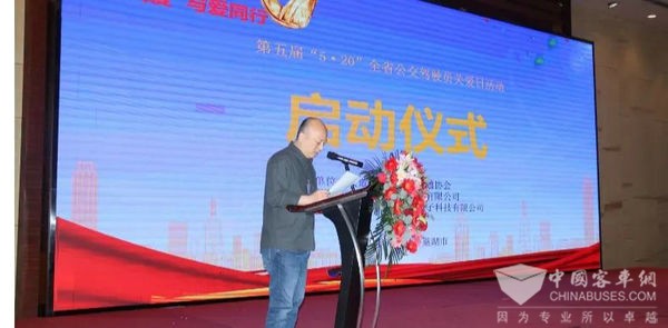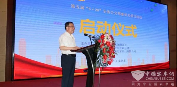 安徽省城市公共交通协会副理事长、芜湖公交党委书记、董事长叶勇主持启动仪式中国土木工程学会城市公共交通分会理事长张必伟为安徽省启动仪式发来视频致辞,对安徽省5·20活动顺利举办表示热烈祝贺,向全省公交驾驶员致以节日的问候。他指出,安徽省城市公共交通协会和省内各公交企业一直是公交驾驶员关爱活动的倡导者、推动者和践行者,是全国公交颇具影响力的人文公交典范之一。张理事长真诚希望社会各界及广大市民给予公交驾驶员群体更多的理解尊重和关心关爱。