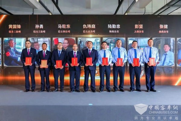 上海地面公交行业“学习强国学习达人”和“安全之星”评选展示及表彰仪式在现场举行,50名来自不同企业的优秀公交职工分别获得荣誉。