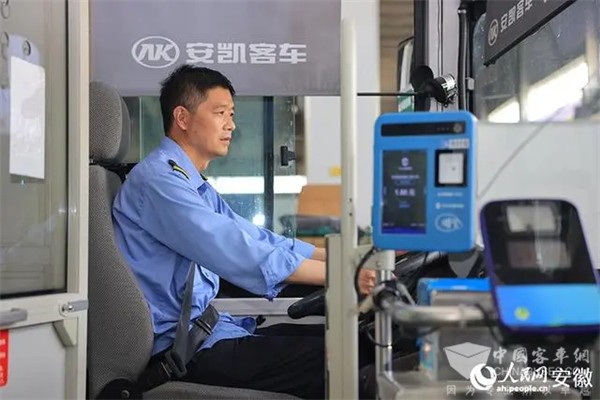 公交车驾驶员启动车辆,准备发车