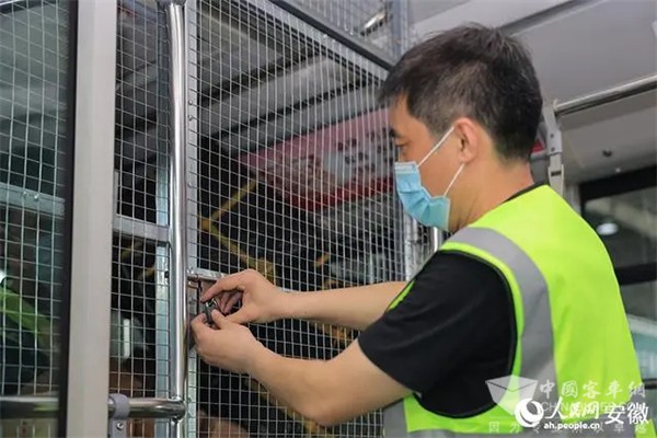 为保障安全,工作人员将货物区域的隔离网上锁