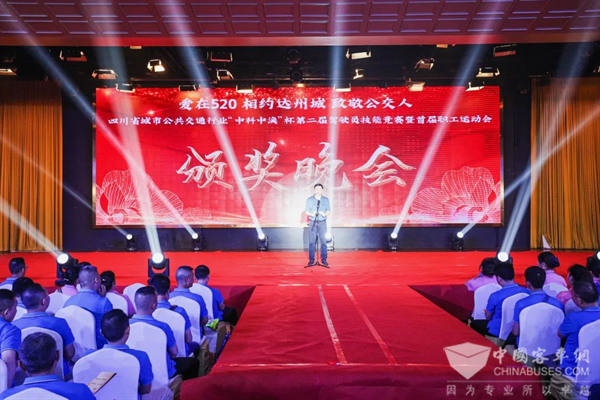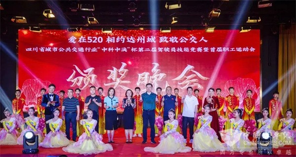 习近平总书记指出,发展公共交通是现代城市发展的方向。优先发展公共交通是服务城市战略、推进城市治理、提升城市品质的民生举措,在全面贯彻党的二十大精神的开局之年,全党深入开展学习贯彻习近平新时代中国特色社会主义思想主题教育之年,由达州公交承办,四川省各市州、县市区18个公交行业共同参与的四川省城市公共交通行业“中科中涣”杯第二届驾驶员技能竞赛暨首届职工运动会旨在发挥典型引领作用,展现公交人的风采,凝聚起广大公交人干事创业的磅礴力量。中国道路协会城市客运分会副秘书长杨坤、四川省城市公共交通协会理事长全钢,各市州、各县市区公交行业负责同志、公交退休老领导及老职工、行风监督员等嘉宾出席本次颁奖晚会。