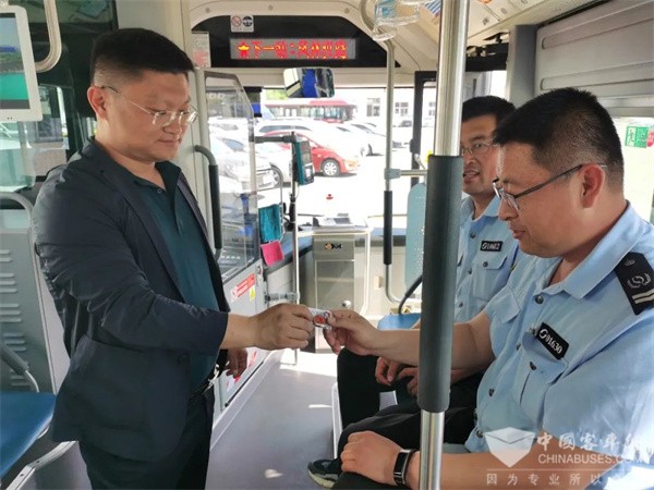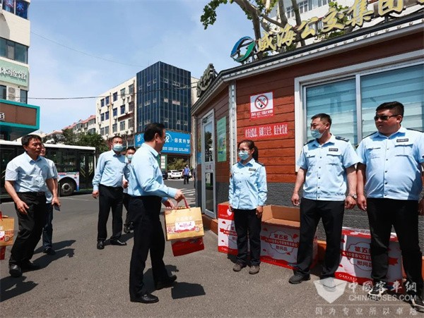5月19日上午,威海公交集团党委书记、董事长曲波,党委副书记、工会主席王亚丽前往实验中学及威高广场枢纽站,看望慰问一线驾驶员并送上慰问品。