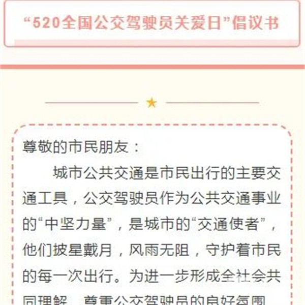 2023年5月20日,是第五届全国公交驾驶员关爱日,威海公交集团党委积极响应号召,先后开展系列关爱活动,使集团驾驶员切实感受到组织的温暖和关爱,进一步增强职业自豪感和归属感,全面提升企业的凝聚力和向心力。