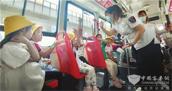 天津市劳动模范、公交8路驾驶员刘世津介绍,有些小朋友乘坐公交车时,会打开车窗将头或手伸出窗外,或在车上嬉笑打闹。车队走进幼儿园,寓教于乐,让小朋友切身体验并学习了解安全文明乘车知识。
