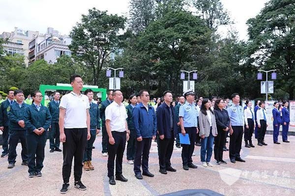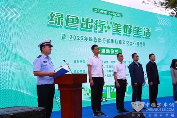 市公安局交警支队副支队长缪永春同志宣读绿色出行倡议书,倡议市民争做绿色交通的建设者、绿色出行的践行者、绿色出行的先行者、文明办公的实践者、文明出行的维护者、公交优先的环保者。为昆明美丽的蓝天,清新的空气,美丽城市人居环境,迈出更美的“一步”。