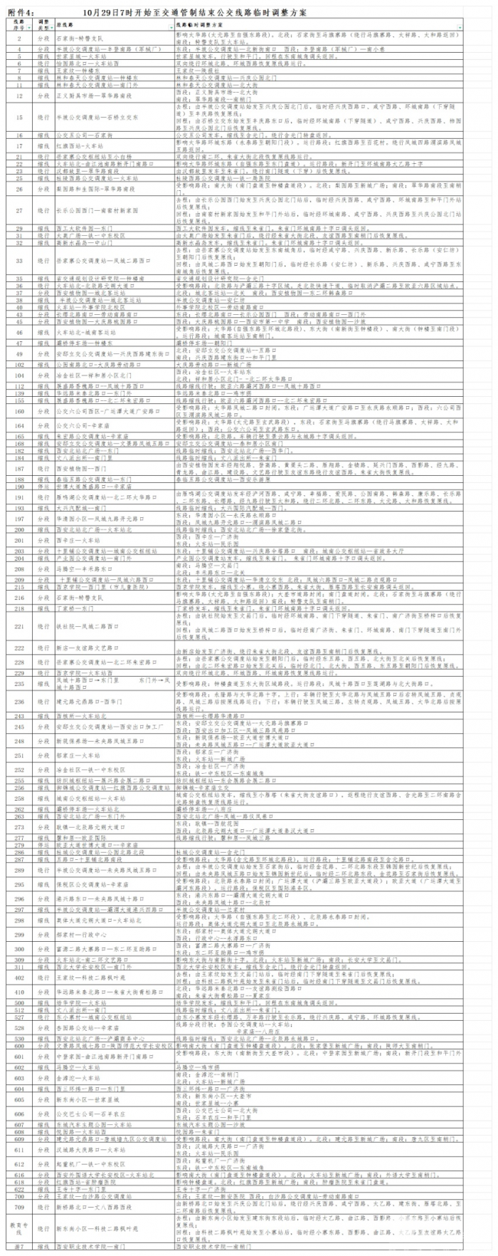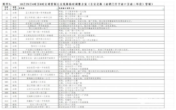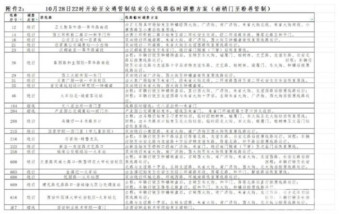 公交线路临时调整情况会根据现场交通管制实际情况进行灵活调整。临时调整的公交线路随公安交通管理部门对交通管制路段的恢复通行而恢复原线路运行;对提前结束交通管制的路段,西安公交集团在接到通知后立即恢复原线路运行。