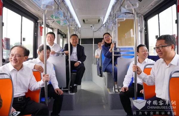 仪式最后薛晔与韩冬一起为“首辆新能源客车下线”揭牌,开启了常州公交新能源客车智造篇章。