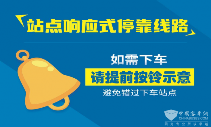 “响应式停靠”,即在实施响应式停靠的站点报站语音前会提示乘客“如需下车,请按铃示意”。乘客们在到站前按铃,公交车便会在这一个停靠站停车;如果车内没有乘客按铃,并且停靠站内也没有乘客等候,公交车将减速越站通过。