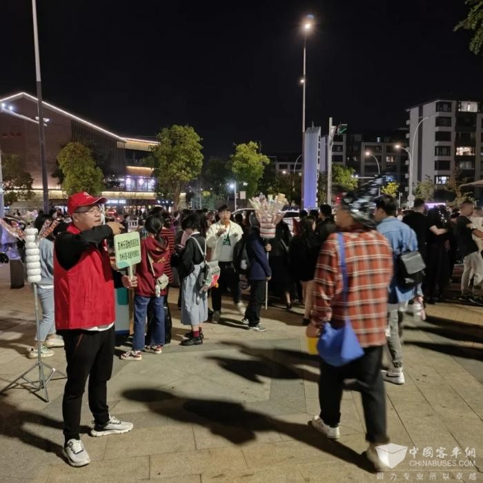 10月28日晚,公交管家准时到达苏州乐园门口,他们在现场向游客提供出行咨询服务,介绍了接驳车辆的发车时间和乘坐方式,同时将有乘车需求的游客有序引导至上客站台。现场不少乘客表示:“幸好有公交车把我们送到地铁站,太方便了,不然不知道什么时候才能回家!”