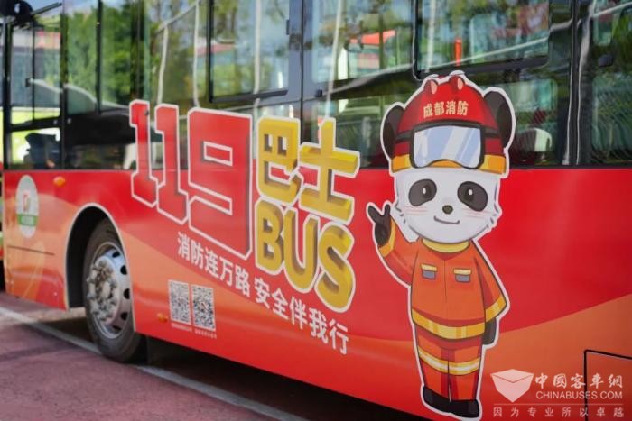 2023年11月6日,三款全新消防主题涂装的119路公交车在2023成都市“11·9”消防宣传月启动仪式上正式亮相并上线运行。